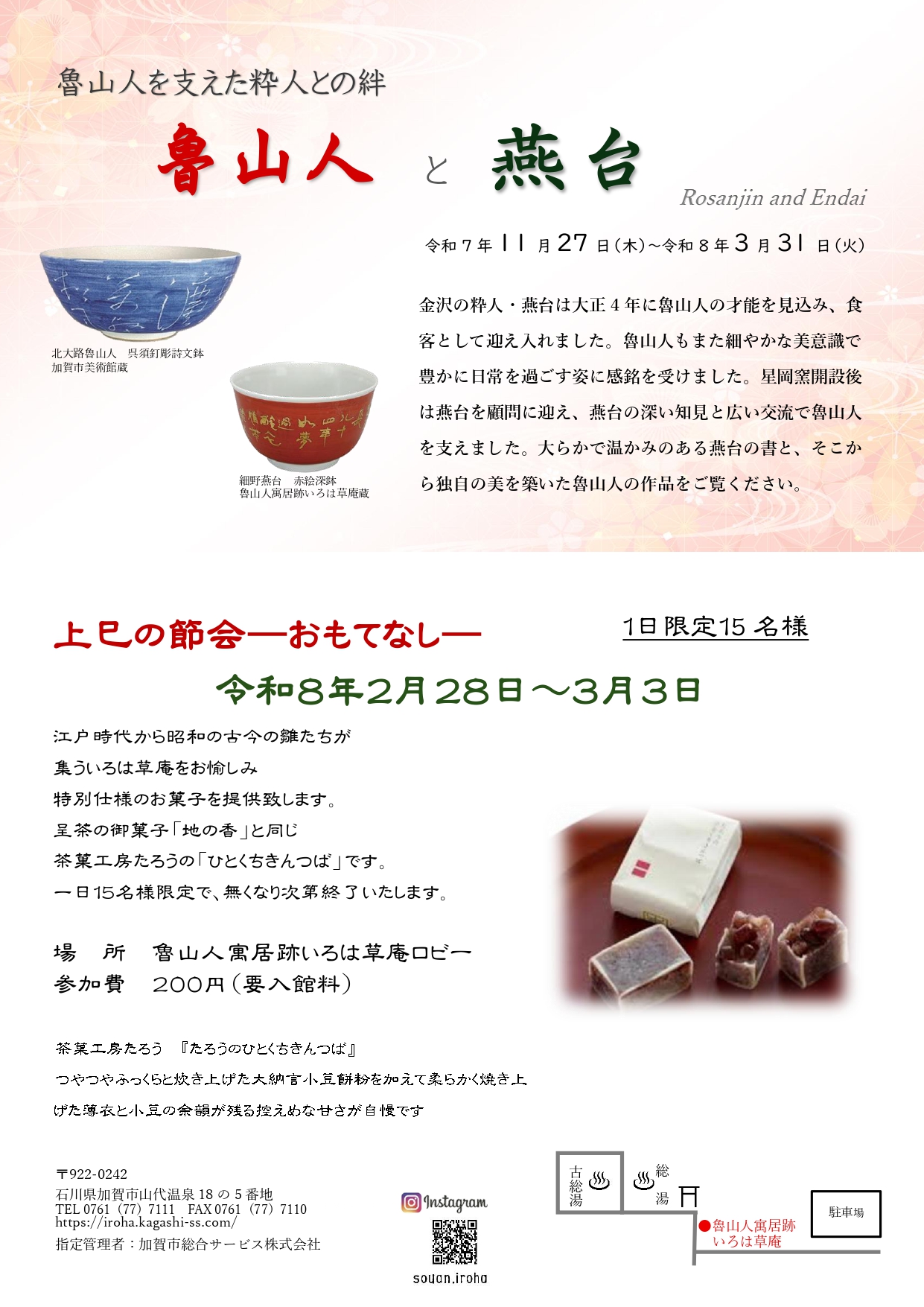 ※和菓子代(ご希望者のみ):200円(各日15名様限定)