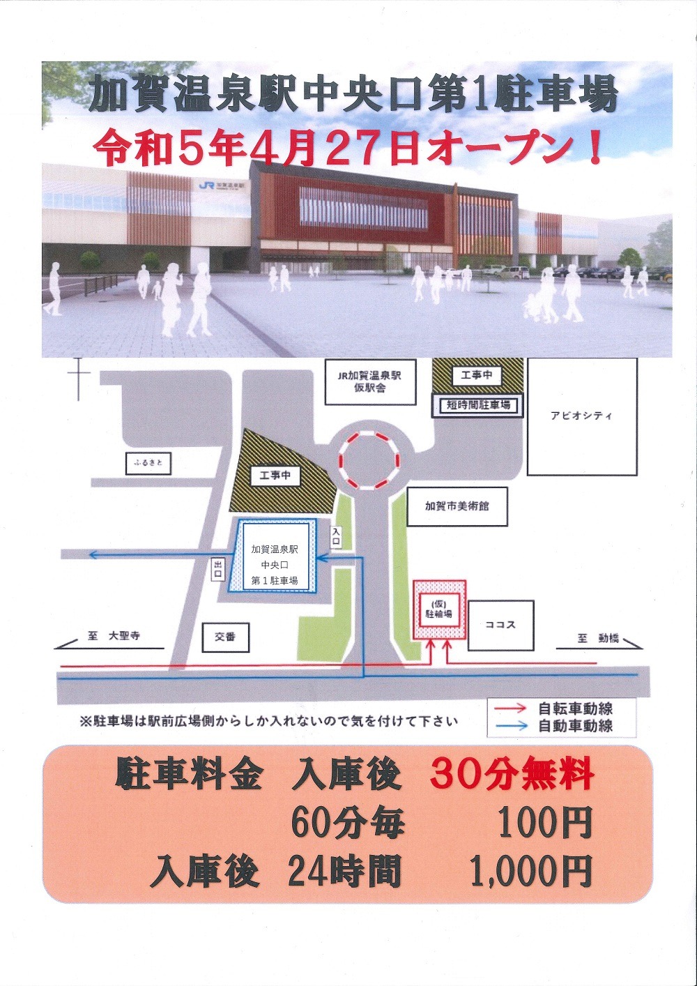 2023.4 / 27(木)加賀温泉駅 中央口第1駐車場オープン(2024.5追記あり)