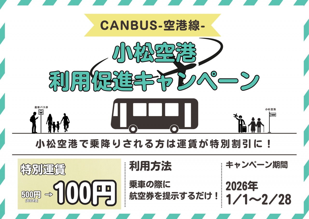 2026. 1 / 1~ 2 / 28 周遊バス キャンバス小松空港線利用促進キャンペーン