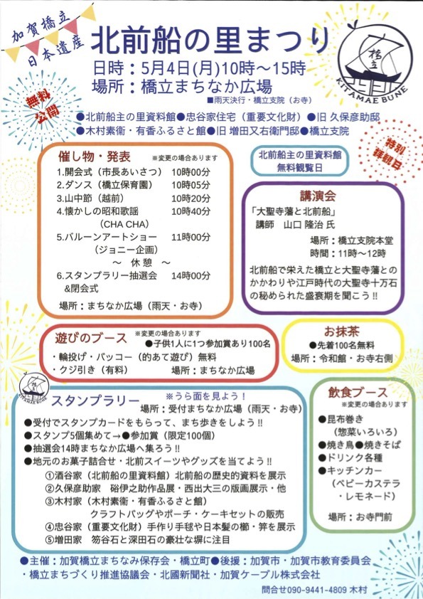 今年のゴールデンウィークもイベント盛りだくさん! 2026.04.28 new 新着情報 5/3(日・祝)〜5/4(月・祝) 山中漆器祭 5/4(月・祝) 片山津マルシェ 5/4(月・祝) 北前船の里まつり 5/5(火・祝) こどもマルシェ ・お得に旅をするなら 「ECO乗りクーポン」 https://www.tabimati.net/coupon/ 「加賀温泉郷パスポート」 https://www.tabimati.net/kaga_passport/ Loading...