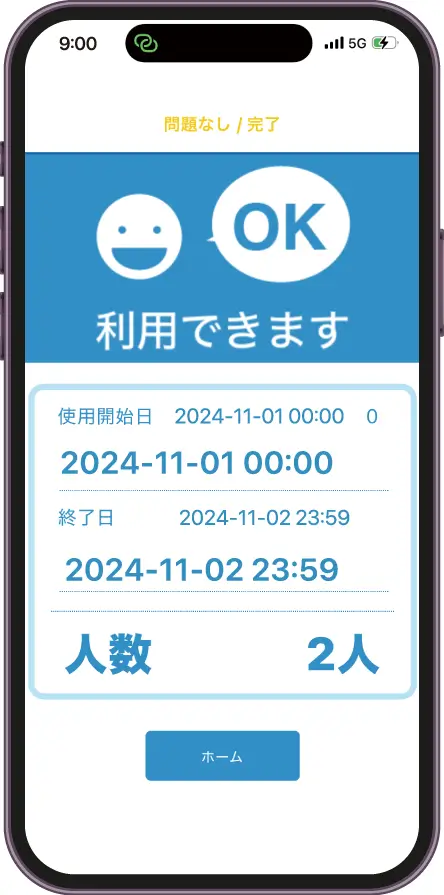 QRコードをスキャンすると、利用または乗降OKの画面が表示されます。