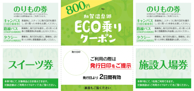 加賀温泉郷(片山津温泉・山代温泉・山中温泉)で購入できる「ECO乗りクーポン」は