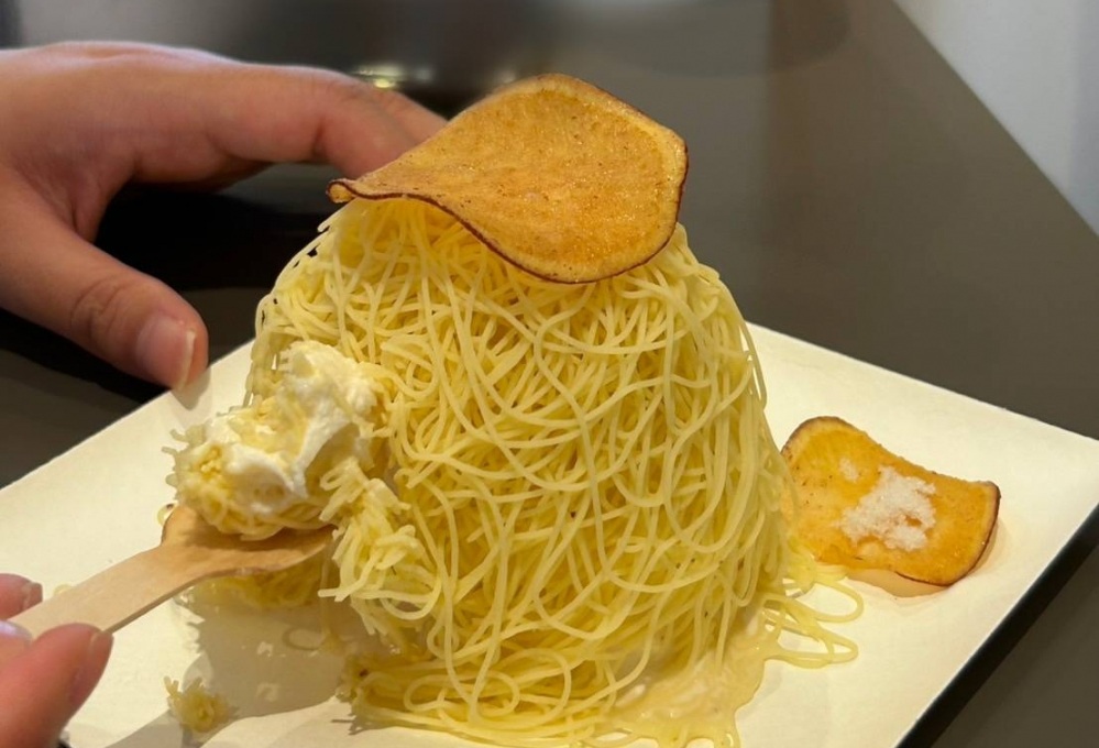 ふわふわのソフトクリームに、しぼりたての五郎島金時モンブランクリームをたっぷりトッピング。