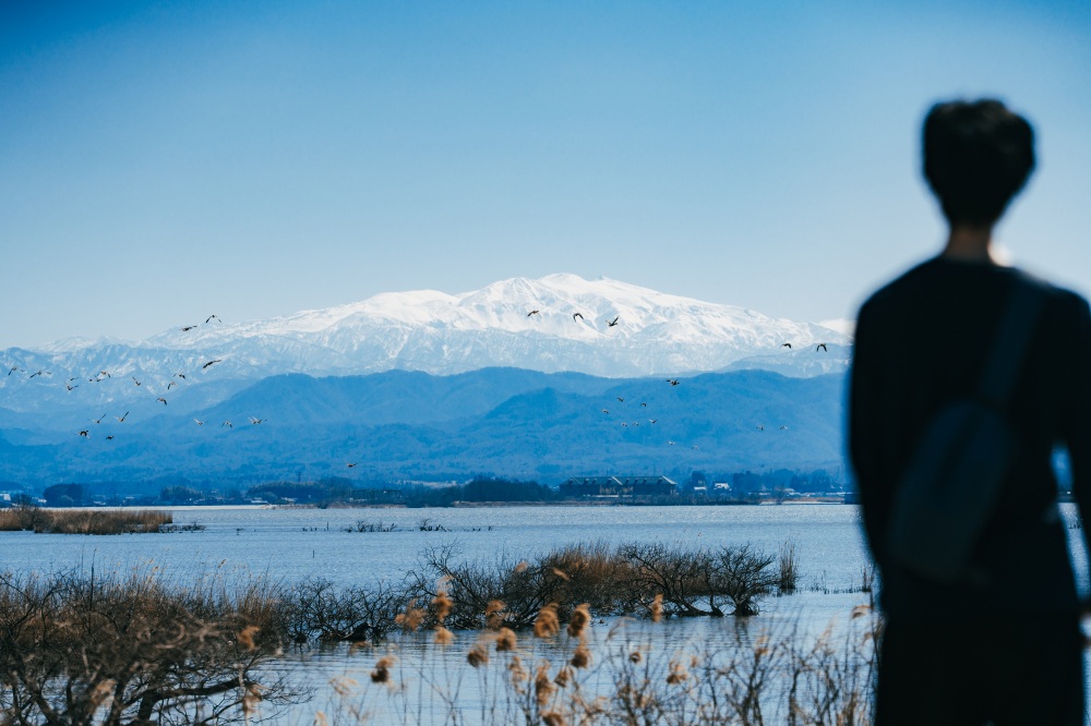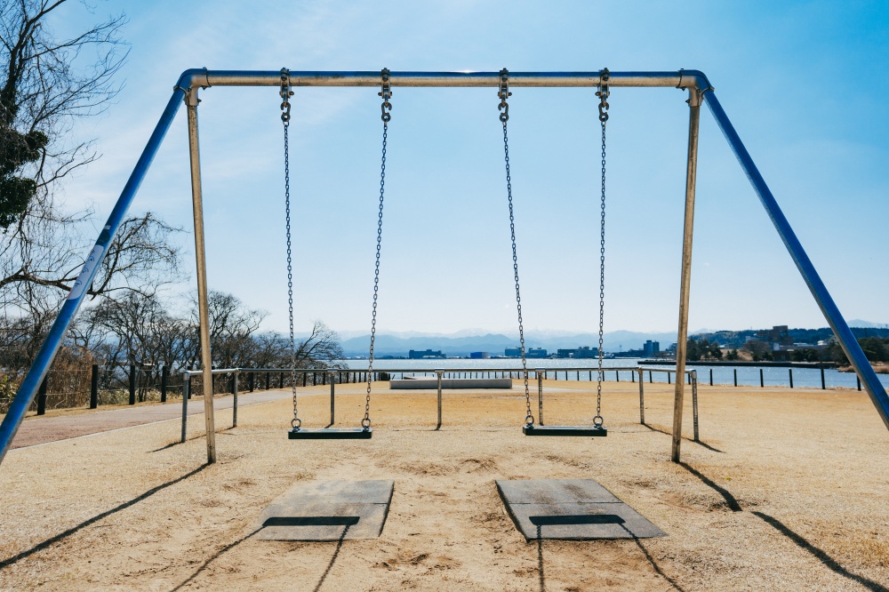 柴山潟のほとりに広がる、視界がひらけた開放的な広場。
