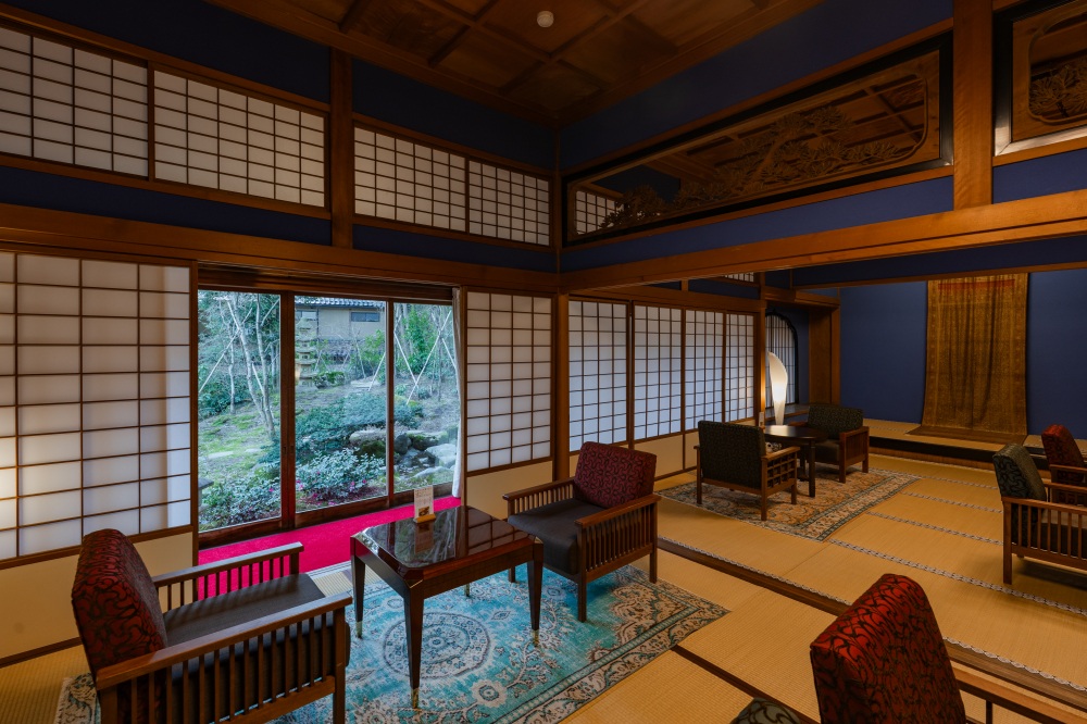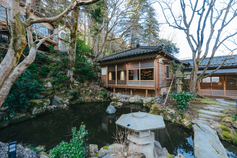 鶴仙渓の豊かな自然に寄り添うように佇む、歴史ある庭園。