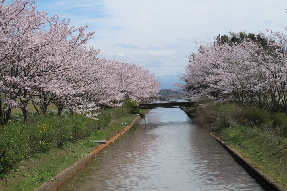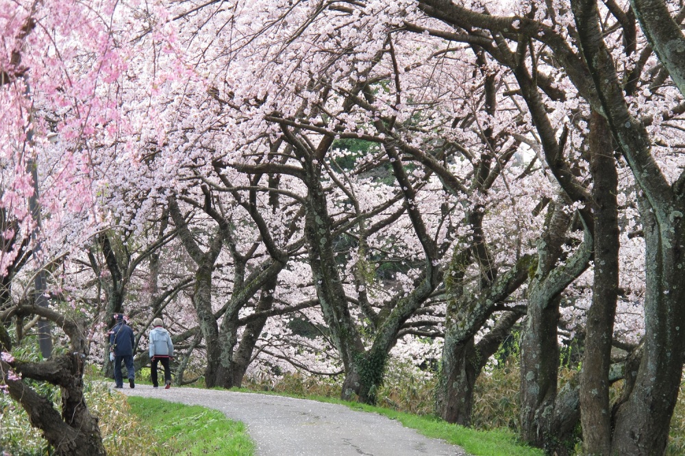 堤防沿いに約100本の桜が咲き誇り、ゆったりとした川面を眺めながら散策を楽しめます。