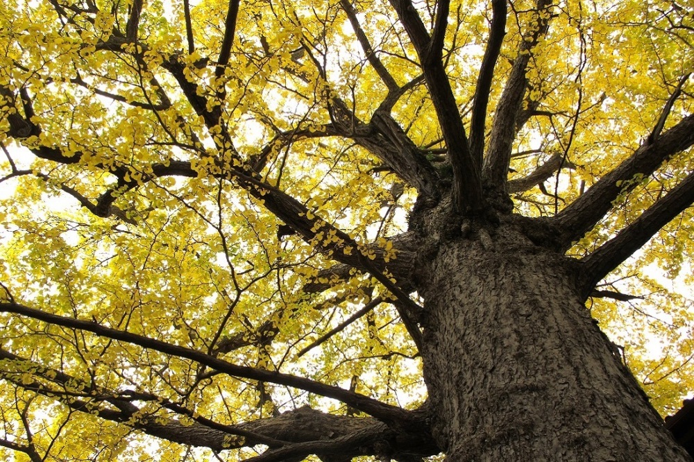 みごとな枝ぶりの堂々とした大木で、毎年秋になるとあたりは黄金色一色!