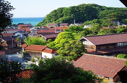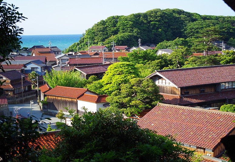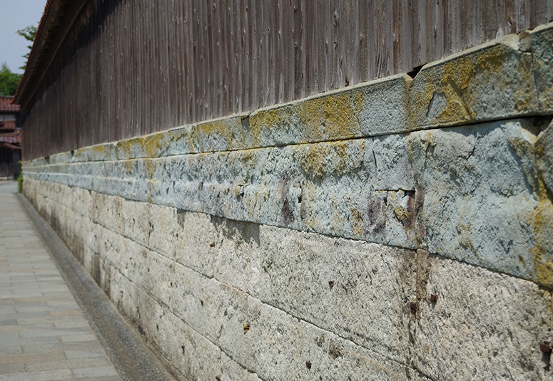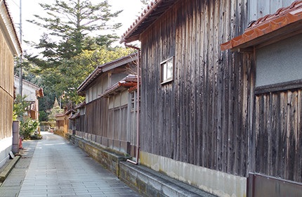 ひなびた町並みにしっくりと溶け合う柔らかな赤瓦の屋根、橋立の船主邸は武家屋敷のような派手さはありませんが、いかにも骨太な海の男の美意識が結集したような家構えです。外観は日本海から吹き付ける潮風からしっかりと家を守る如く船板で覆われています。船を安定させる底荷として運ばれた石は神社や参道の石段に利用されています。歴史の魅力を持つ町は数多くありますが、北前船の寄港地・船主集落は立地や町のつくり、祭り・芸能や神社仏閣の雰囲気など他地域とはかなり違う趣を感じることができます。そこは荒波を越え、人・物・文化を運んだ多くの男たちの夢が紡いだ歴史情緒に出会える異空間なのです。