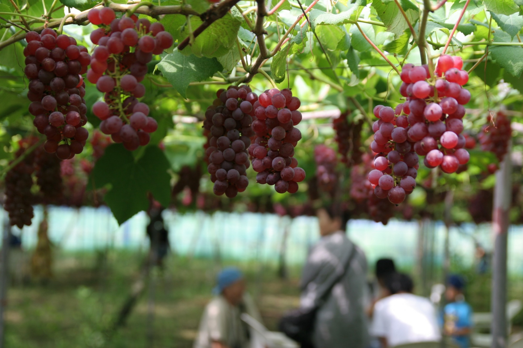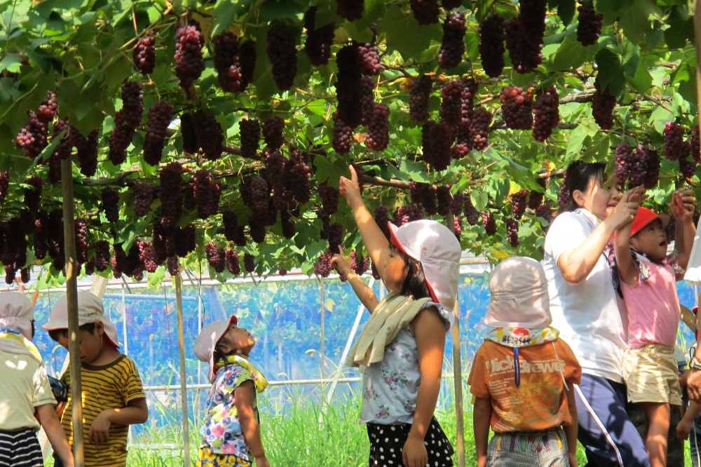 市内にある ぶどう園 の中には 夏から秋にかけて ぶどう狩り ができるところがあります。