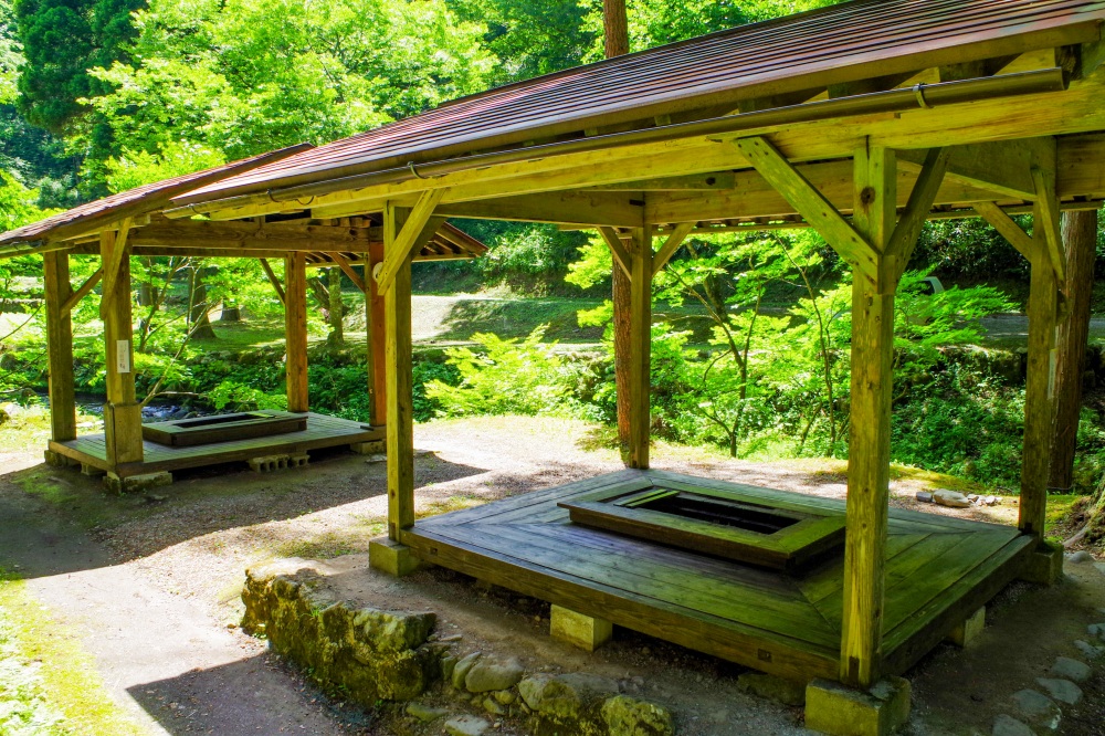 豊かな自然に恵まれ、清流には、イワナ、ヤマメなどの川魚が、森の中には、カモシカ、たぬき、リスなどの野生動物の姿が。思いっきりBBQを満喫した後は、温泉地でのんびりお風呂に入ってみては?