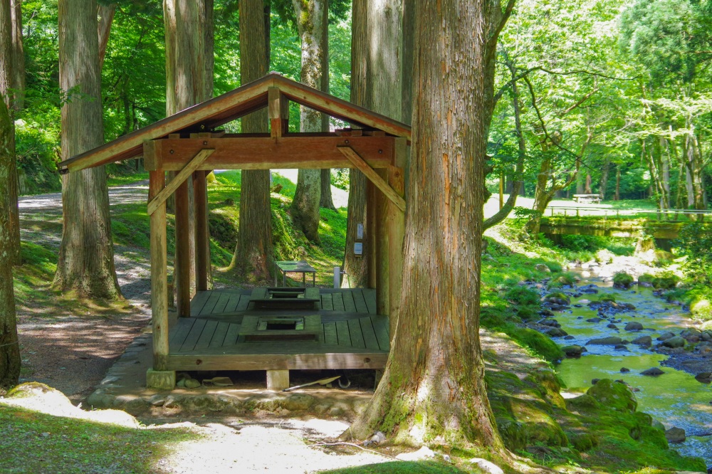 炊事場あり。トイレ(水洗)はキャンプ場に隣接。