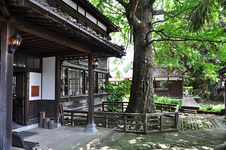 この館は明治期に建てられた、懐かしい建物で、樹齢650年と言われるイチョウなどの巨木に囲まれた、心和む雰囲気の中にあります。