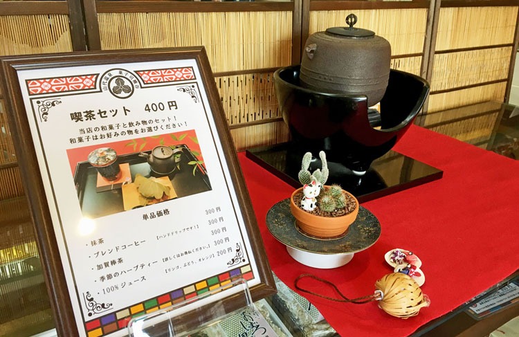 【茶店】当店で抹茶やコーヒー、季節のフレッシュハーブティーなどもご用意しております。季節限定のお飲み物もございますので、旅の足休めにご利用ください。地元御用達の店に是非ご来店ください!