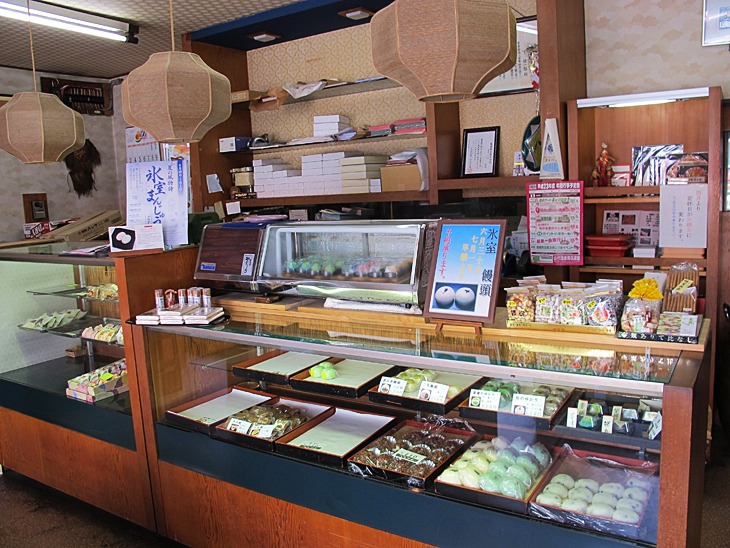 主な商品には温泉シンボル烏(からす)にちなんだ、ゴマ皮ゴマ餡の「烏のゆかり」、菖蒲湯まつりにちなんだ、よもぎ皮よもぎ餡の「菖蒲のゆかり」、百年前からかわらぬ製法で作った豆大福など取り揃えております。 すべて手作りのため数に限りがございます。