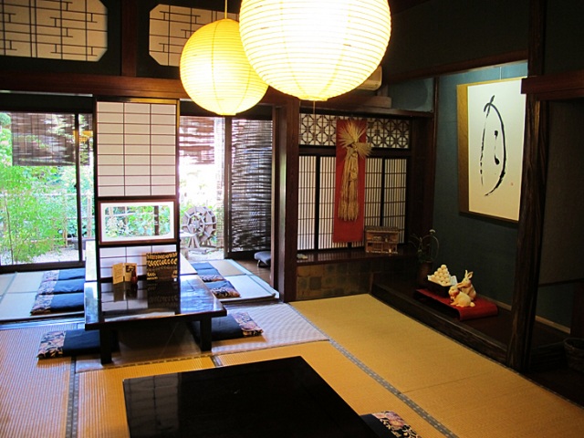 店舗入口にはちりめん和雑貨や山中漆器などがたくさんあり、蕎麦を待つ間にお楽しみください。女性客に人気です。