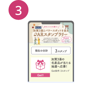 ① 加賀3温泉を回遊し、本企画のスタンプラリーのスタンプをためる