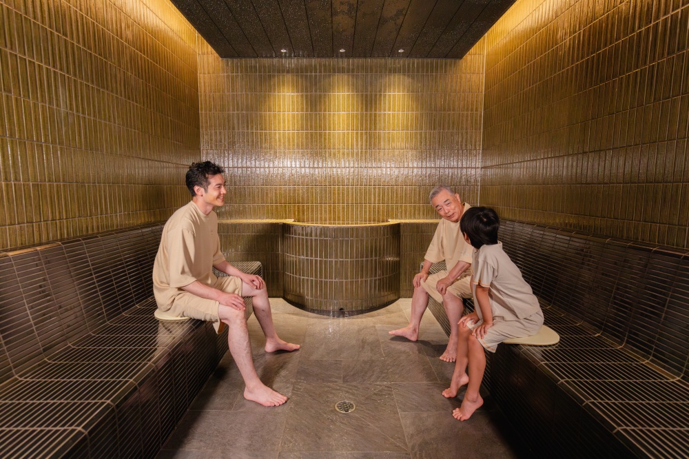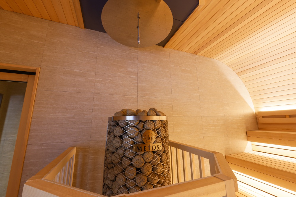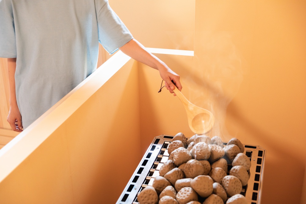 サウナ室に入ってからは何も考えずにサウナの熱を存分に感じて頂くために、暗めの落ち着いたトーンのサウナ室となっています。心を空にし、時が過ぎるのを忘れ、無の中で限りのない命の鼓動を感じられます。