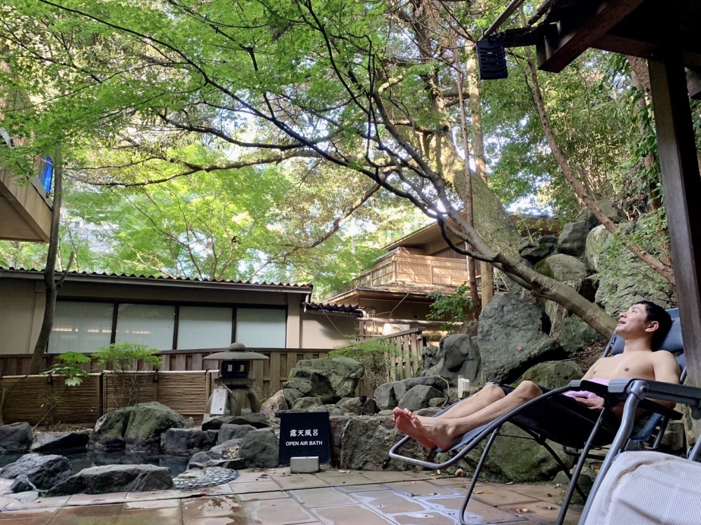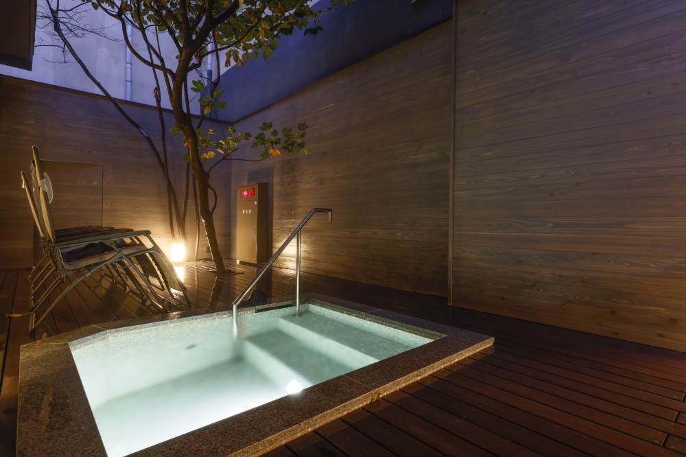 体がキュッと締まり、心身ともにリフレッシュできます。サウナの後は、露天風呂 の外気浴 '' スペースにあるチェアで火照った体をクールダウン。