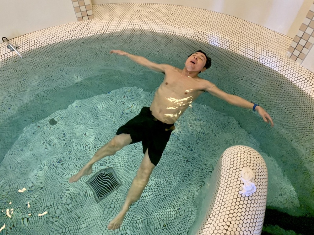 プール&スパでは、本格的なアクアリラクゼーションが体験できます。様々な、楽しい「水」との遊びが、ひとつの空間にパッケージ。日常から開放されて、心身ともにリフレッシュ。サウナはフィンランドサウナ室と、スチームサウナがあります。プールからサウナ室へ入るスタイルで、水着が必要です。水風呂の高いデザイン性に注目です。とても深く、螺旋階段で水風呂のなかに降りる仕様になっています。