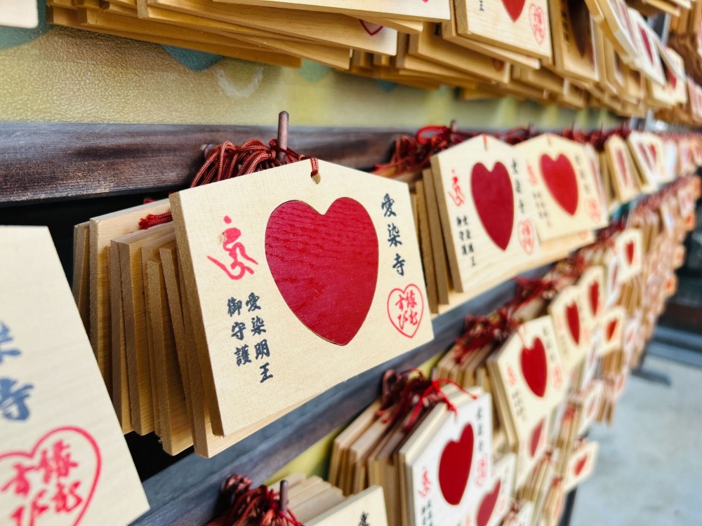 日本初、はめ込み式の絵馬「一心絵馬」は縁結びの絵馬で特許庁の実用新案登録を受けています。 また、永代供養納骨堂「無憂(むう)」は木造建築で建物内部は土壁土床で出来ています。 お墓を建てるのが困難になりつつある現代に於いて愛染寺の納骨堂は温もり有る心安らかな納骨堂です。