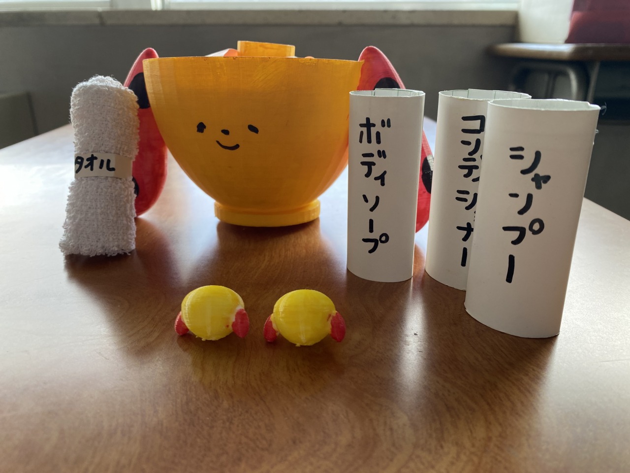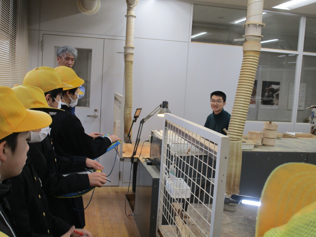 これらの活動は、一人ひとりがいろいろなテーマについて調べ、発表していたため、効率が悪いと考え、2学期後半からは、「おわんさん」と「山中漆器」をテーマにし、みんなでこれらを盛り上げ、山中温泉に観光客を呼び込もうと考えました。そこで、「商品開発部門」「宣伝部門」「企画部門」の3部門にグループに分かれ、それぞれが取り組みを考えていきました。