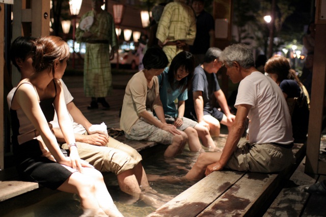 山中温泉 菊の湯 女湯 外観 ライトアップ