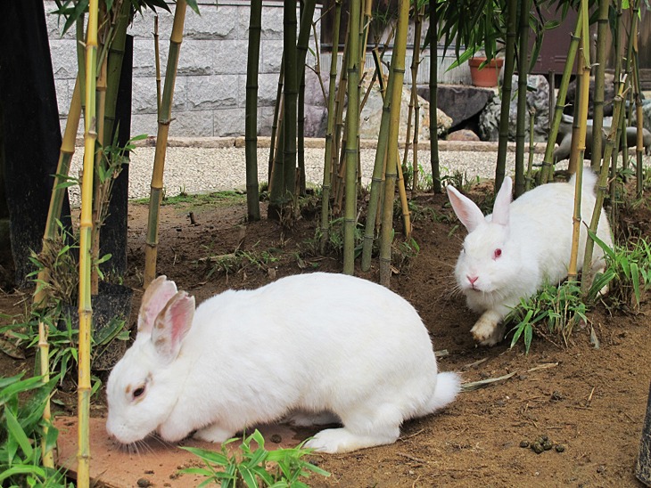 「月うさぎの里」はうさぎをテーマとしており、広場(屋外)にはうさぎが放し飼いされています(約50羽)。