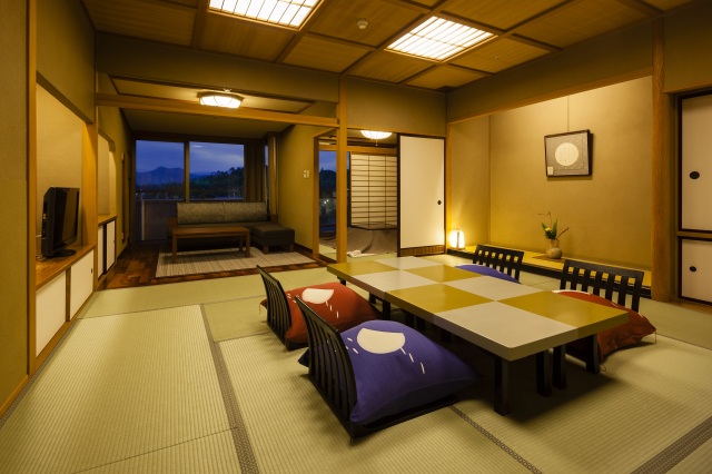 趣の異なる3つの温泉大浴場「悠幻の湯殿」、「滝見の湯屋」、「九谷の湯処」を男女時間帯入れ替えにて、“一泊三湯十八ゆめぐり”をお楽しみいただけるほか、温泉たまご手作り体験などの無料の湯上がりサービスをご用意。 標準客室から温泉露天風呂付客室までご旅行の目的に合わせて多彩な客室をお選びいただけます。 また、お食事には、総料理長考案の薬膳料理や山海の幸をご賞味ください。 その他、コンベンションホール、会議場、宴会場や二次会場など、充実した施設で皆様のお越しをお待ちしております。