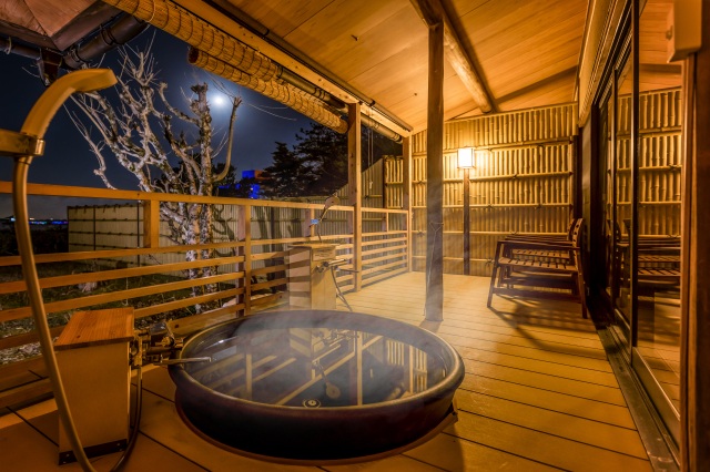 露天風呂付きのお部屋ではご一緒に露天風呂をお楽しみいただけます。