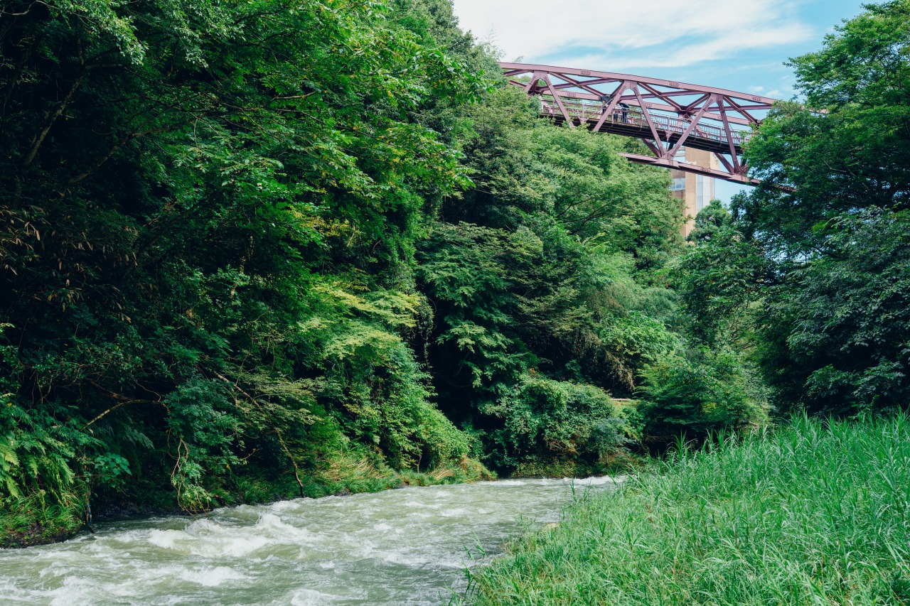 華道家 勅使河原宏氏デザインのユニークなS字型の橋