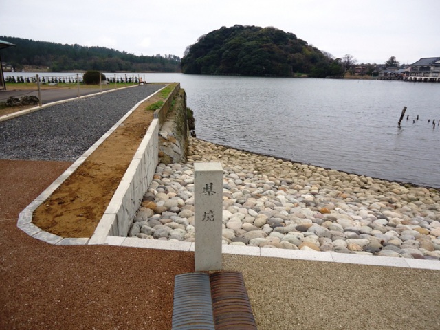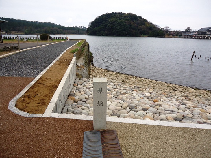 玄関を入ると県境が一目で分かるデザインで、目の前には国指定天然記念物の鹿島の森と、北潟湖の景色が広がります。