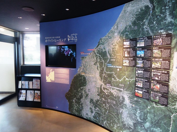 館内では観光情報を提供するほか、越前加賀の一向一揆や吉崎御坊などの歴史、周辺に生息する生き物などを紹介しています。
