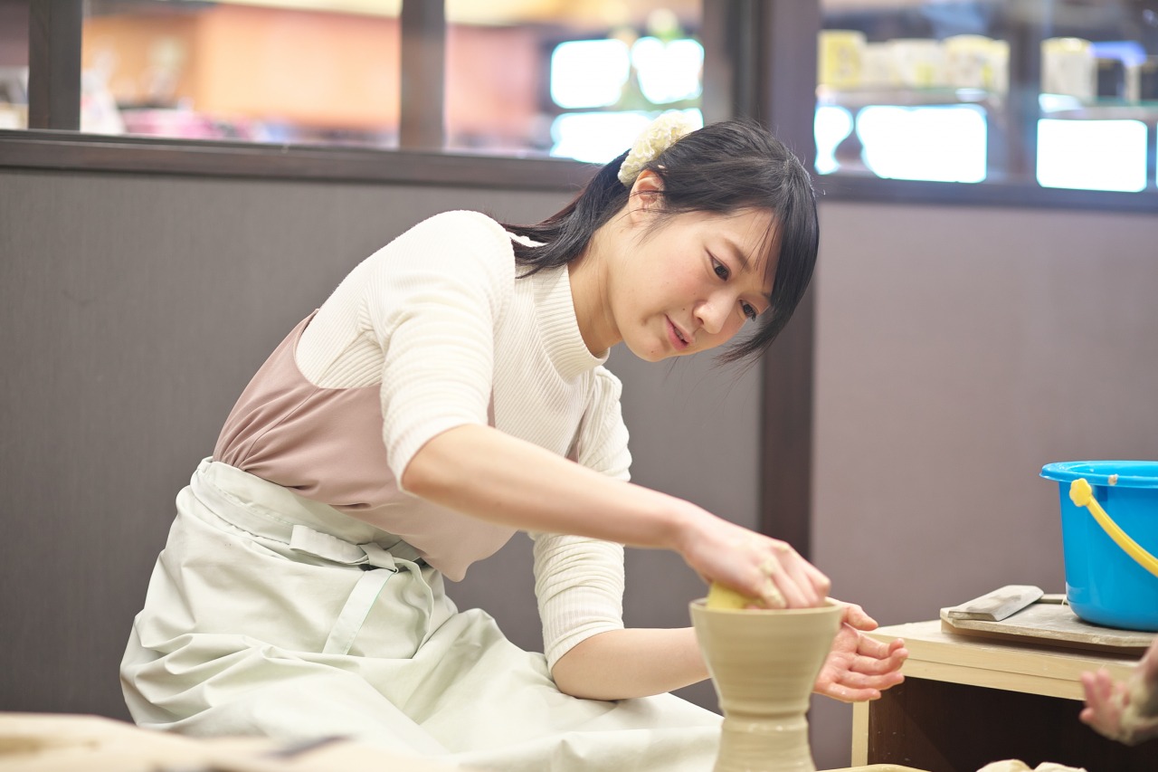 九谷焼体験コーナーも充実しており、絵付けやろくろの体験が楽しめます。 絵付体験・ろくろ体験では、スタッフが親切丁寧に指導してくれるので初めての方でも安心です。「ギャラリー五彩」では、ここでしか見られない人間国宝の作品が多数展示してあり、匠の技が堪能できます。