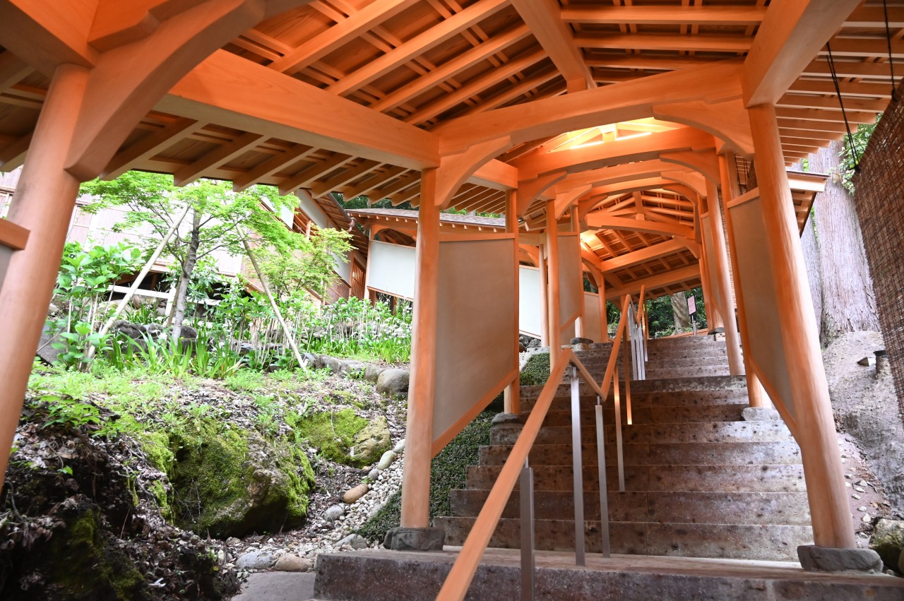 加賀温泉駅から北鉄加賀バス 温泉山中線(2番のりば) → 山中温泉バスターミナルバス停から約850m