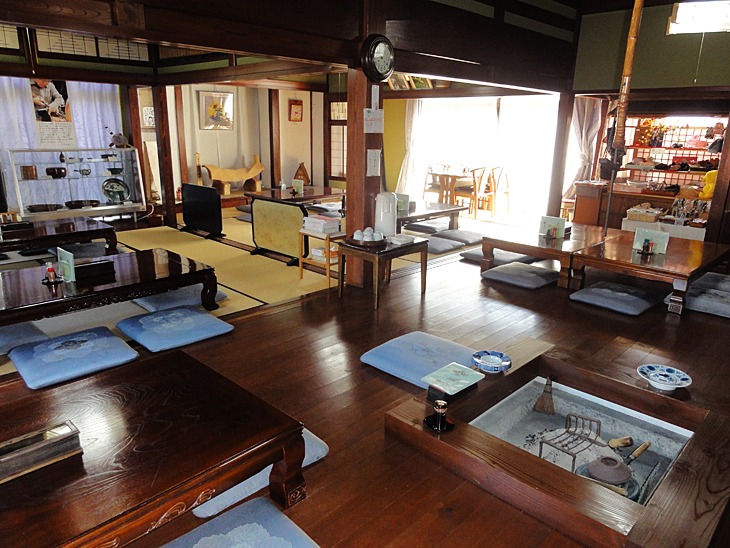 石挽き自家製粉したソバ粉を使用しての手打ちソバ、腰がしっかりした本格ソバ。 40名までが一度に体験できるソバ打ち道場もあり、自分で打ったソバを食べることができる。