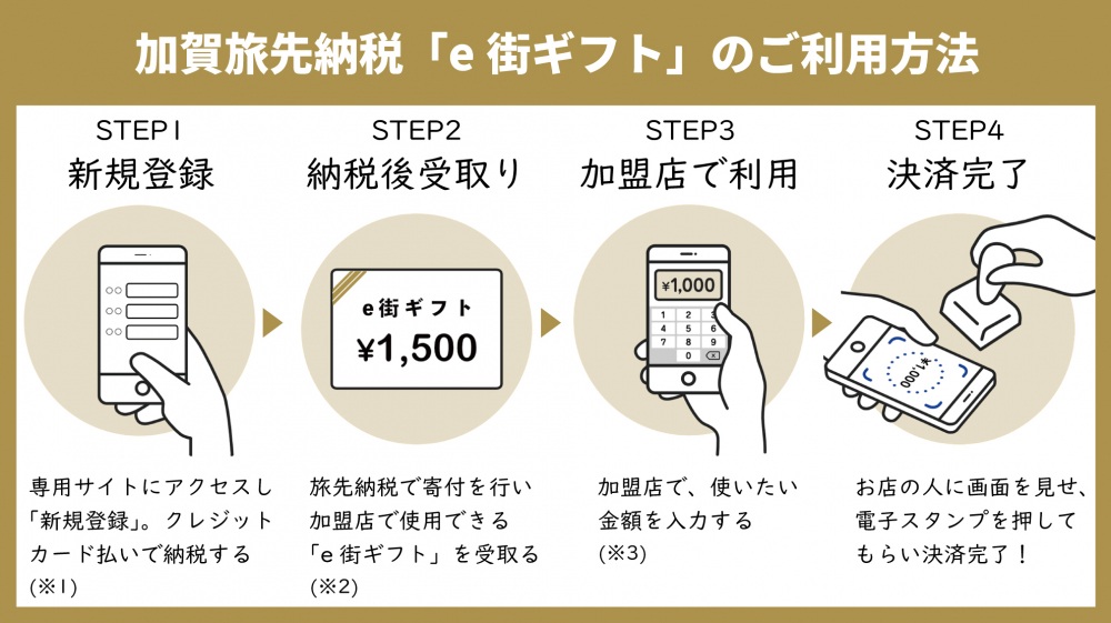 ※2:「加賀旅先納税e街ギフト」は、一般的な電子マネーと同様に1円単位で使用できます。